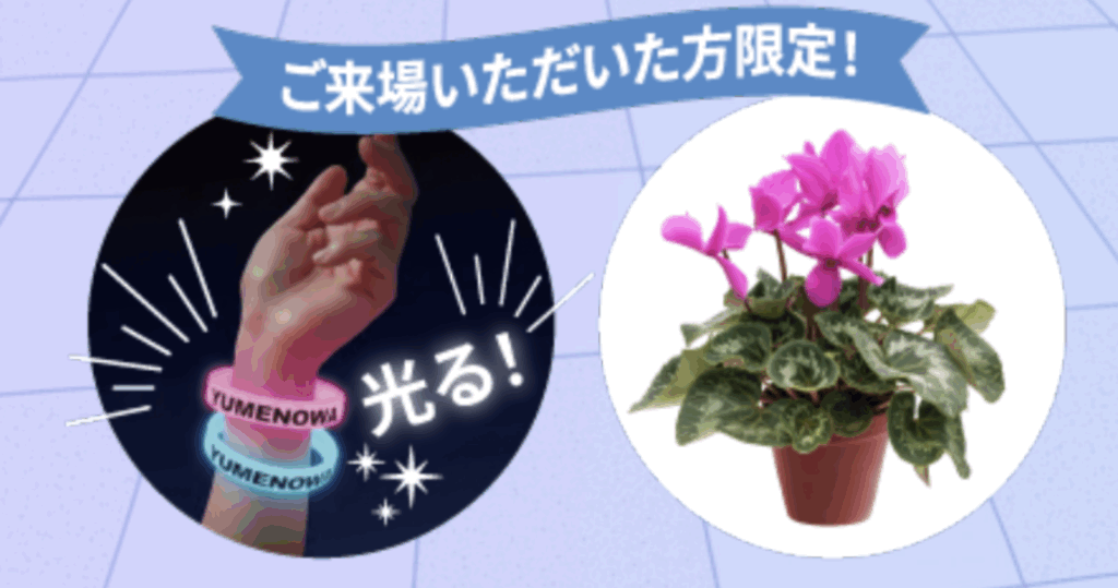 11月22日(土)に夢のわ2025の開催会場の千葉市中央公園へご来場いただきました方へ、先着で「夢のわブレスレット」&「シクラメン」のプレゼントを実施いたします。